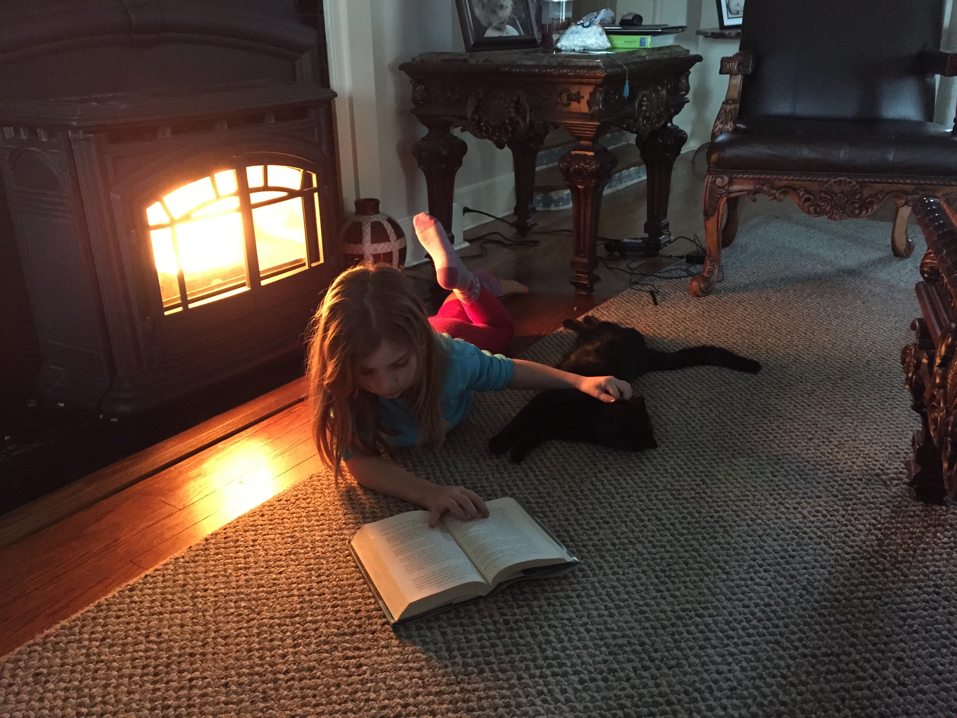 Sitting in front of the fire reading with the cat… Peaceful, leisurely, snow days.